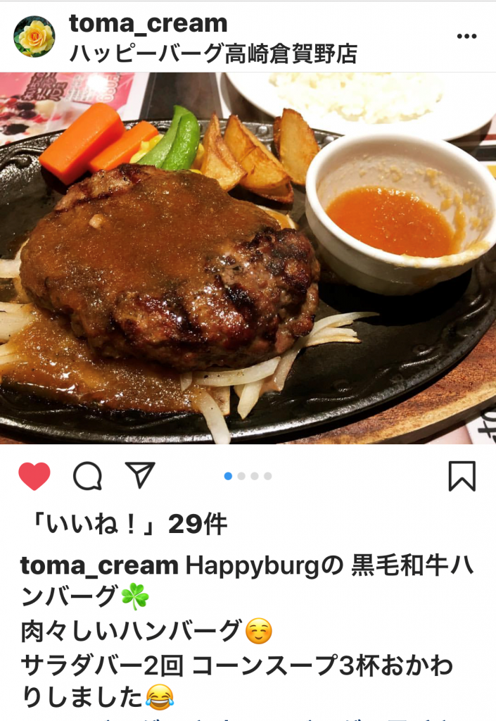 HappyBurg高崎倉賀野店にinstagramからこんな投稿をして頂きました!