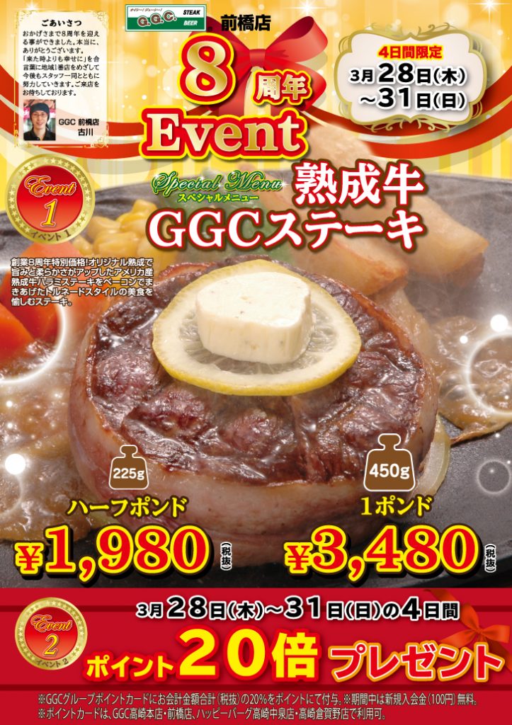 2019年3月28日(木)から3月31日(日)はGGC前橋店8周年イベント開催!