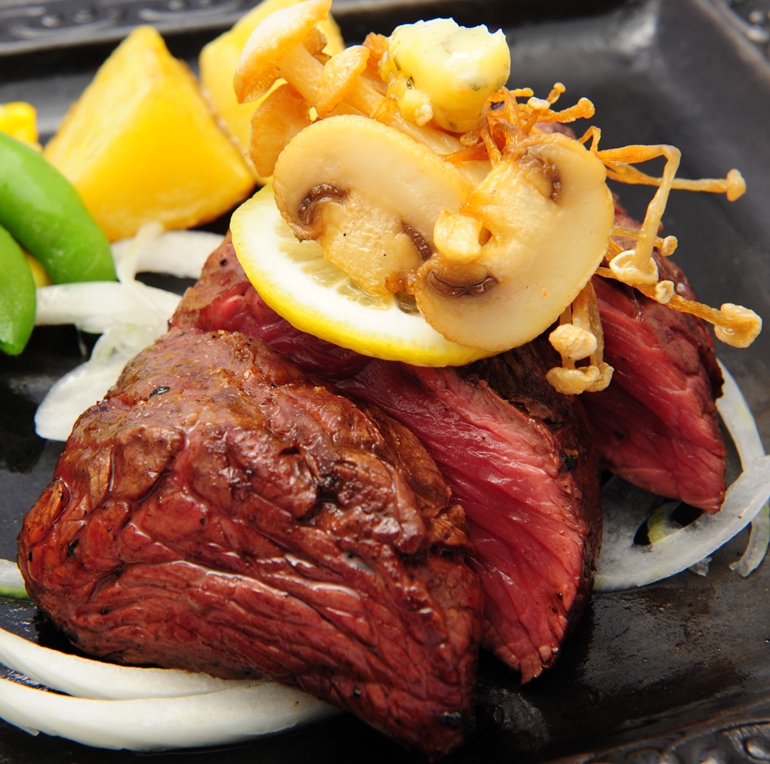 国際基準をクリアした熟成牛ハラミステーキにミックスきのこバターのせ。オリジナル熟成でさらに旨みがアップ!!
