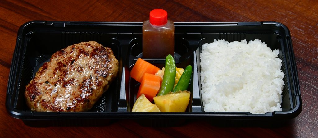 ロケ当日、スタッフの皆さまにハンバーグ弁当を提供させて頂きました。(提供当時のお弁当、その後、容器が変更になりました。)