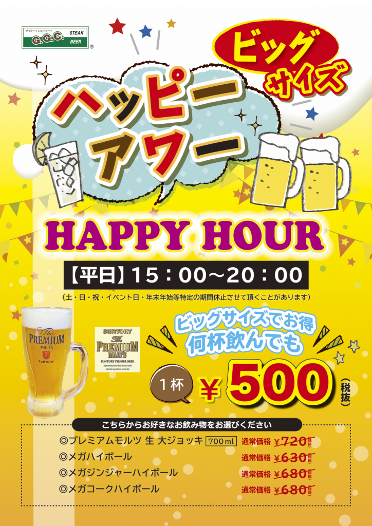 ☆GGC前橋店 ハッピーアワー開催予定☆