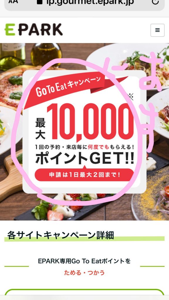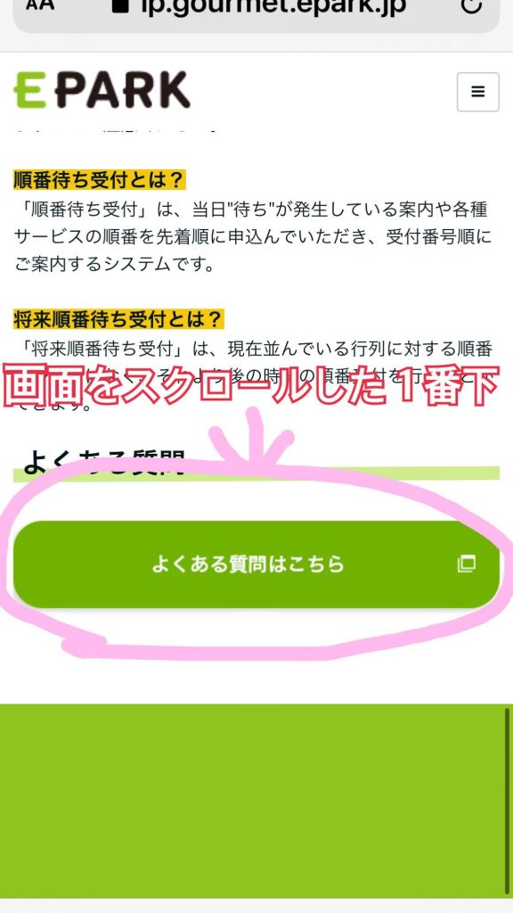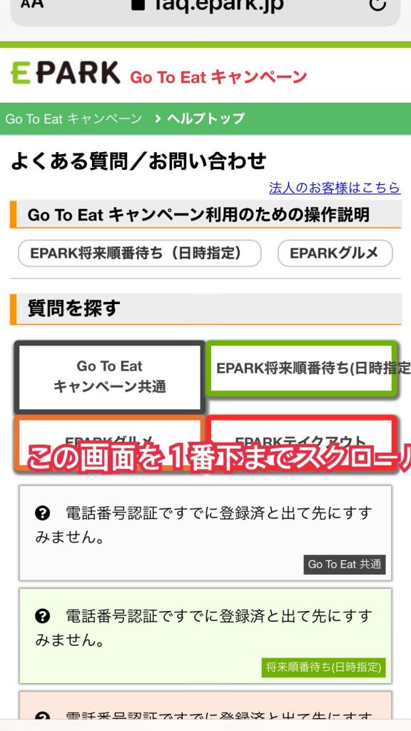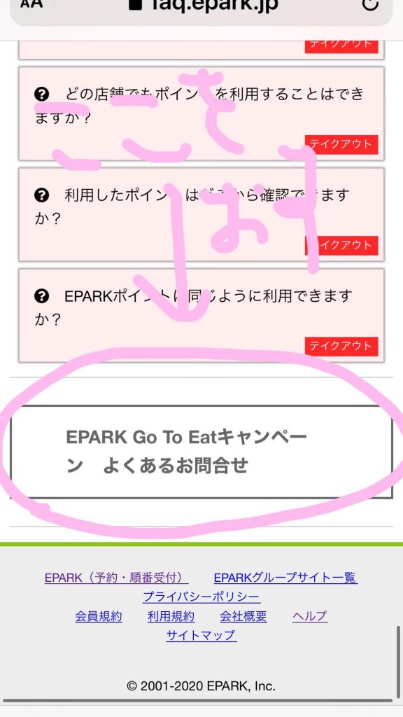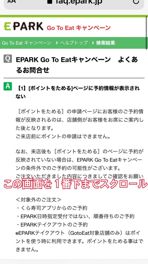 ④「EPARK GoToEatキャンペーン よくある問い合わせ」をおす