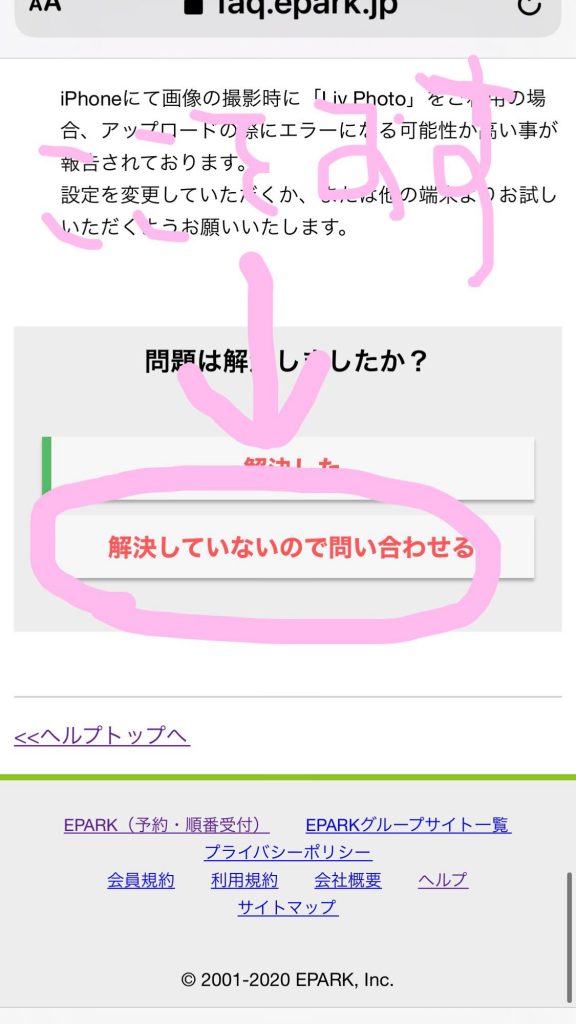 ⑦こちらから必要事項をご記入の上、EPARKへお問い合わせをお願いします。