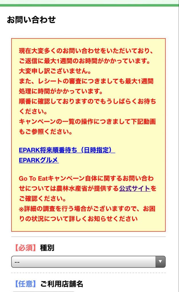 大変申し訳ございませんが、お客様からEPARKへお問い合わせをお願いします。(個人情報の観点から弊社からEPARKへ問い合わせができません。)