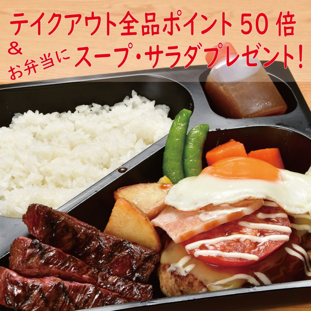2021年2月22日(月)まで期間延長!!テイクアウト全品ポイント50倍&お弁当にはスープ・サラダをプレゼント!!
