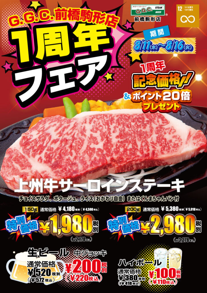ありがとうございます。おかげさまでGGC前橋駒形店は1周年ヽ(^o^)丿
