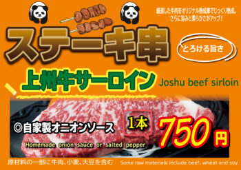 自社の熟成庫でじっくりと熟成をかけた上州牛サーロインステーキを串にさした贅沢な上州牛サーロインステーキ串を販売します。