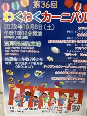 2022年10月8日(土)わくわくカーニバル 場所:東邦薬品駐車場 時間:13時30分から19時30分ぐらい