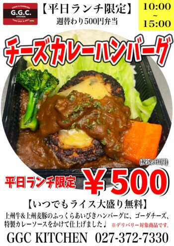 【チーズカレーハンバーグ】12月19日(月)から12月23日(金)ワンコインランチ