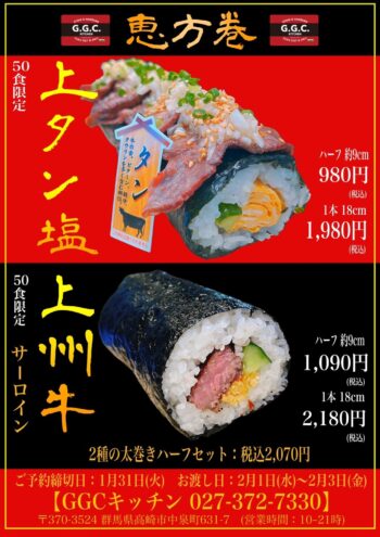 おニクの恵方巻ご予約受付中【GGCキッチン】
