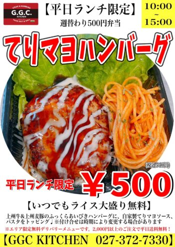 【てりマヨハンバーグ】2023年3月27日(月)から3月30日(金)まで♪ワンコインランチ