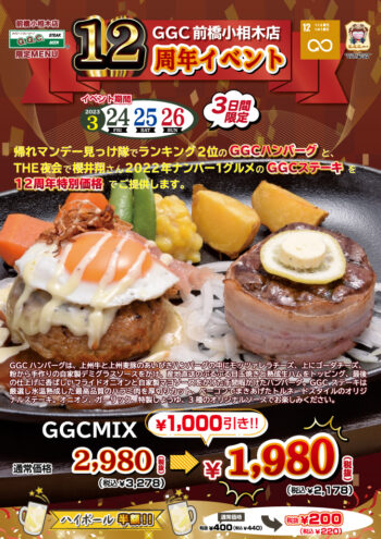 2023年3月24日(金)25日(土)26日(日)の3日間はGGC前橋小相木店の12周年イベントを開催!
