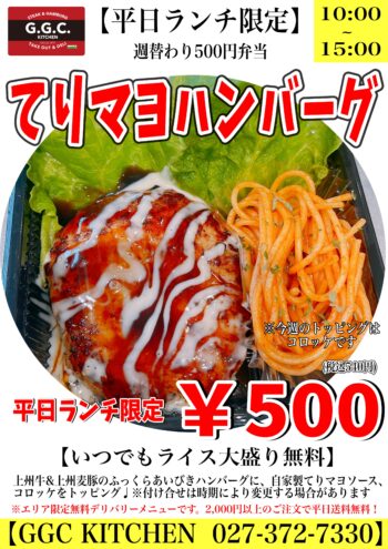 【てりマヨハンバーグ弁当】2023年5月29日(月)から6月2日(金)平日限定ワンコインランチ