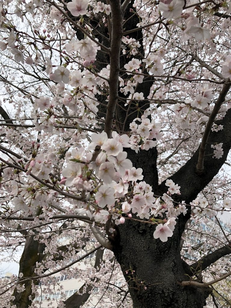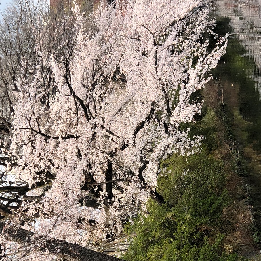 日曜日は、前日の強風のイメージでいたのですが朝から風もなく、やわらかい日差しで、ぽかぽか陽気。一気に桜がきれいに咲きました。これはお堀のところの桜です。