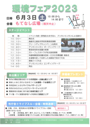 2019年6月8日(日) 環境フェア 場所:もてなし広場 時間:10時から14時まで