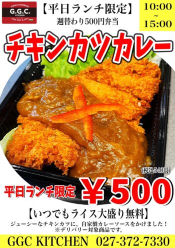 【チキンカツカレー弁当】2023年7月3日(月)から7月7日(金)平日限定ワンコインランチ