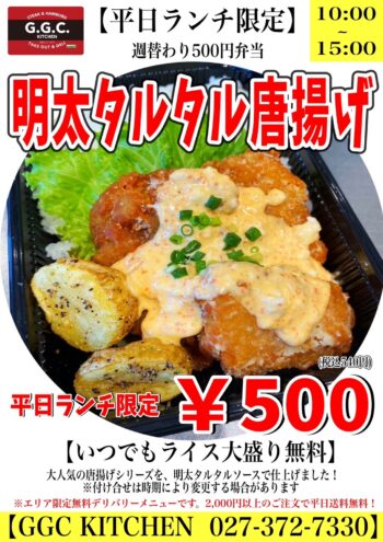 【明太タルタルから揚げ弁当】2023年7月31日(月)から8月4日(金)平日限定ワンコインランチ