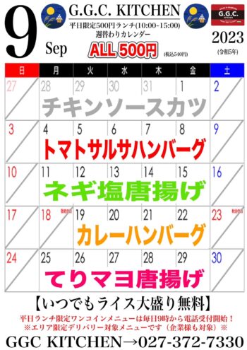 2023年9月4日(月)から9月8日(金)まで、高崎市のGGCグループ店GGCキッチンで、大人気のハンバーグ弁当シリーズが販売♪