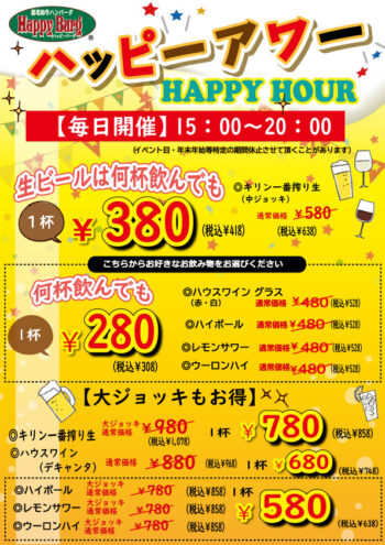 毎日開催♪ハッピーアワー、時間も長くなりました【ハッピーバーグ高崎倉賀野店】