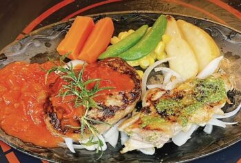 2023年10月からスタートした週替わりで平日限定サービスランチ♪今週はトマトハンバーグ&バジルチキン!