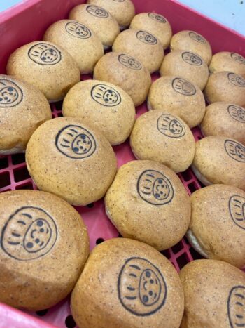 そして、新発売の「だるまバーガー」も必食です!上州牛を100%使用したハンバーグを使ったバーガーで、高崎だるまを焼き印したかわいいパンで包まれています。群馬県産の小麦粉を使ったパンとの相性も抜群ですよ!