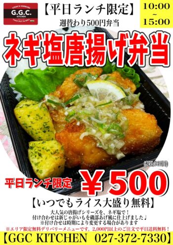 【やみつきネギ塩唐揚げ弁当】2023年11月6日(月)から11月10日(金)平日限定ワンコインランチ