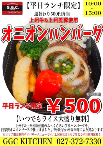【和風オニオンハンバーグ弁当】2024年2月13日(火)から2月16日(金)平日限定ワンコインランチ/GGCキッチン