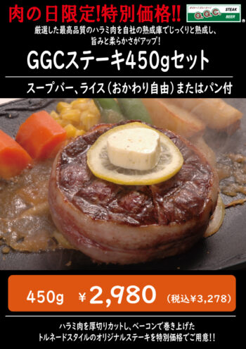 さらに!!GGCステーキも450gを特別にご用意!!特別価格 ¥2,980(税込¥3,278)!!