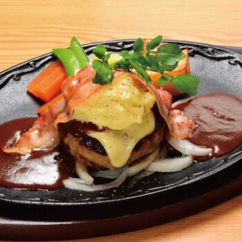 さらに、自家製のデミグラスソースとたっぷりのマッシュポテト、カリッと焼き上げたベーコンがトッピングされ、絶妙なハーモニーを奏でます。このメニューは、家族みんなで楽しむことができます。