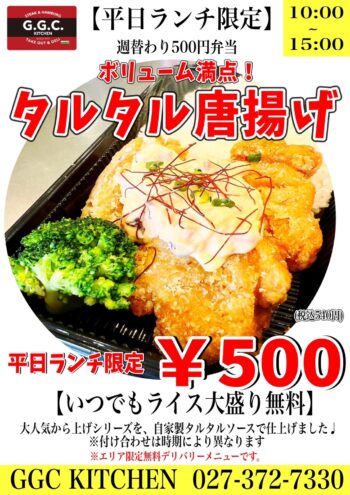 【タルタル唐揚げ弁当】2024年4月1日(月)から4月5日(金)平日限定ワンコインランチ/GGCキッチン