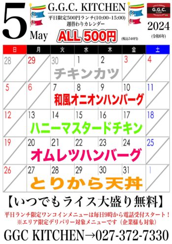 ワンコインランチはライス大盛り無料&エリア限定デリバリー対象商品です!