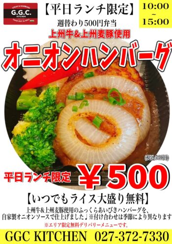 【和風オニオンハンバーグ弁当】2024年5月7日(火)から5月10日(金)平日限定ワンコインランチ/GGCキッチン