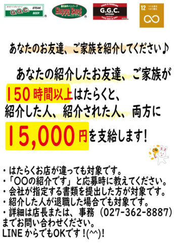 ※紹介する方は、紹介する方が採用決定が決まった時点で書類を各店舗の責任者に提出してください。