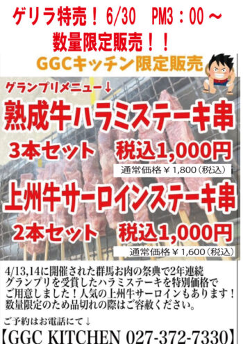 GGCキッチン限定!15:00から販売スタート★数量限定ゲリラ販売★