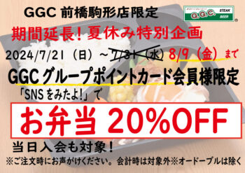 期間延長!お弁当20%OFFキャンペーン!GGC前橋駒形店