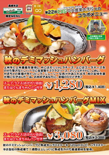 家族みんなで楽しもう!秋限定の中央農業大学校とのコラボハンバーグ