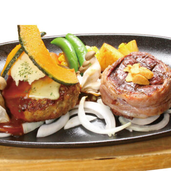 お肉も食べたい!というあなたは熟成牛GGCステーキ180gと秋のデミマッシュハンバーグが一緒にに楽しめる「秋のデミマッシュハンバーグMIX」がオススメです。大満足の一品をご用意しておりますので、ぜひご家族揃ってお越しください。