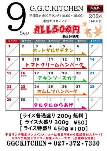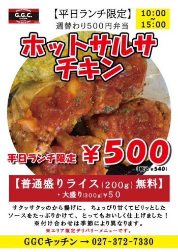 【ホットサルサチキン弁当】2024年9月2日(月)から9月6日(金)平日限定ワンコインランチ/GGCキッチン