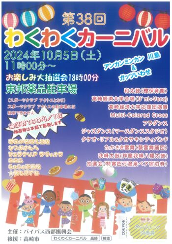 2024年10月5日(土)は、第38回わくわくカーニバルに出店します!