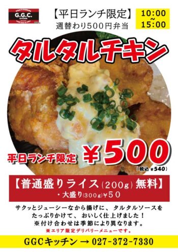 【タルタルから揚げ弁当】2024年12月2日(月)から12月6日(金)平日限定ワンコインランチ/GGCキッチン