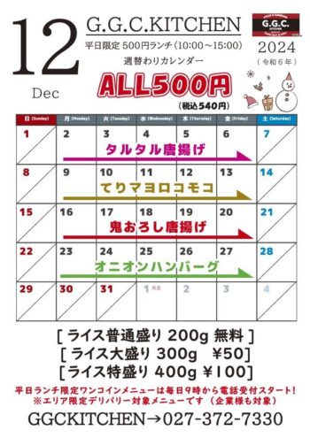2024年12月でワンコインランチは終了。2025年1月より平日サービスランチ580円(税込)に変更となります。仕入れ価格、水道光熱費の高騰により苦渋の判断となります。ご迷惑をおかけしますが、ご理解賜りますようお願い申し上げます。