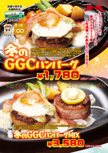 12月のおすすめメニュー「冬のGGCハンバーグ」「冬のGGCハンバーグMIX」も対象です。