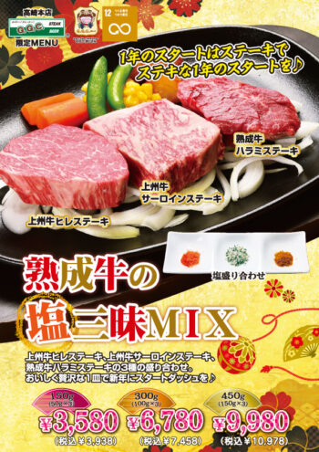 1月のおすすめ「熟成牛の塩三昧MIX」も対象です。