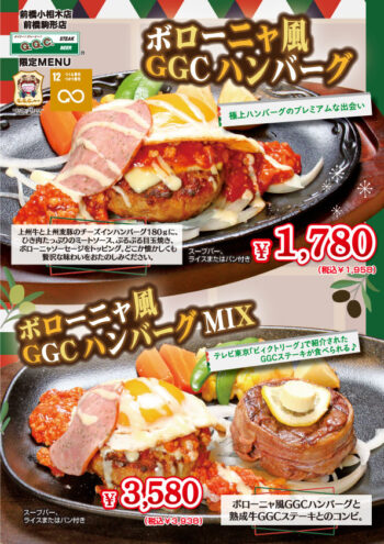 2025年2月のおすすめメニュー「ボローニャ風GGCハンバーグ」「ボローニャ風GGCハンバーグMIX」も対象です。
