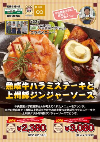 熟成牛ハラミステーキと上州豚ジンジャーソース