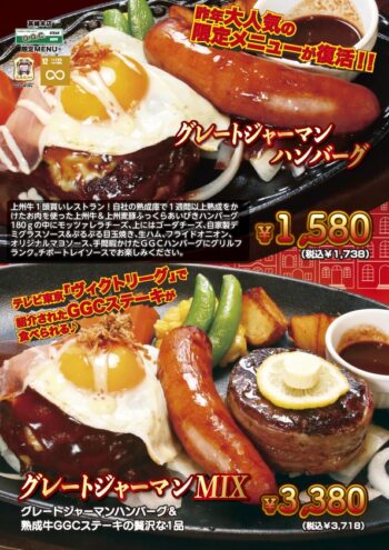 ★上州牛ステーキ&ハンバーグ GGC高崎本店★前橋インター、高崎方面 車で10分