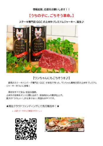 【シェアのお願い】群馬のローカルチェーン店GGCが、上州牛ステーキで、ワンちゃん用のジャーキー作りました!