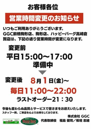 平日もっと便利に──GGC前橋小相木・駒形・ハッピーバーグ高崎倉賀店が通し営業を開始