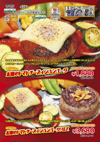 2025年9月のおすすめメニュー中央農業大学校とのコラボメニュー「炙りチーズの太陽のトマトチーズインハンバーグ」