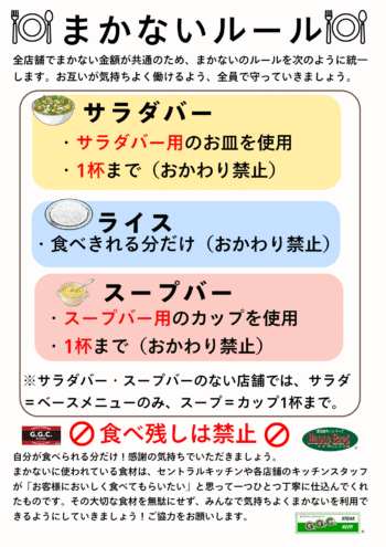 まかないルール統一のお知らせ(サラダバー・スープバー付店舗)
